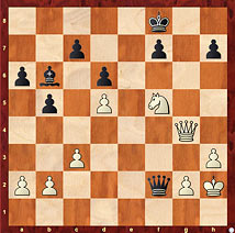 In Runde 7 des Turniers spielte unsere Mannschaft 1 gegen die Carl-von-Ossietzky-Oberschule. In einem spannenden Duell entschied sich Giacomo bei folgender Partiestellung (siehe Diagramm) für Dg7 Schach und die Partie endete (leider) nach ein paar weiteren Zügen mit Remis. Aufgabe: Wie hätte Giacomo anstelle des Zuges Dg7 Schach fortführen sollen? Findest du den Zug, der ihm einen großen Vorteil und damit dann (höchstwahrscheinlich) auch den vollen Punkt eingebracht hätte? |