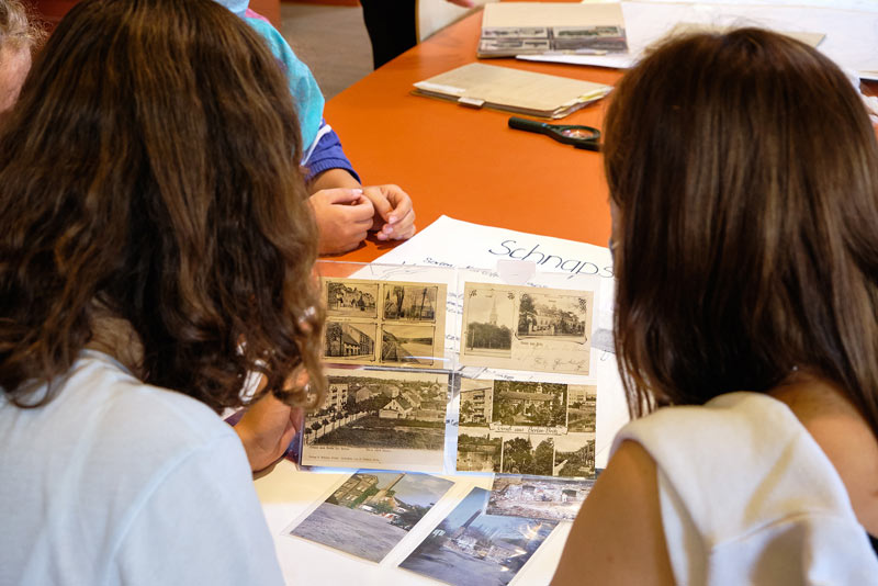 In der aktuellen Wechselausstellung des Museums Neukölln „Großstadt Neukölln. 1920-2020“ puzzelten wir in Teamarbeit mit großen Würfeln sechs verschiedene großformatige Ansichten des Gutshofs Britz und recherchierten im Geschichtsspeicher alte Fotos, Zeitungsausschnitte, geografische Karten, landwirtschaftliche Geräte, alte Zeugnisse und Lehrlingsverträge.